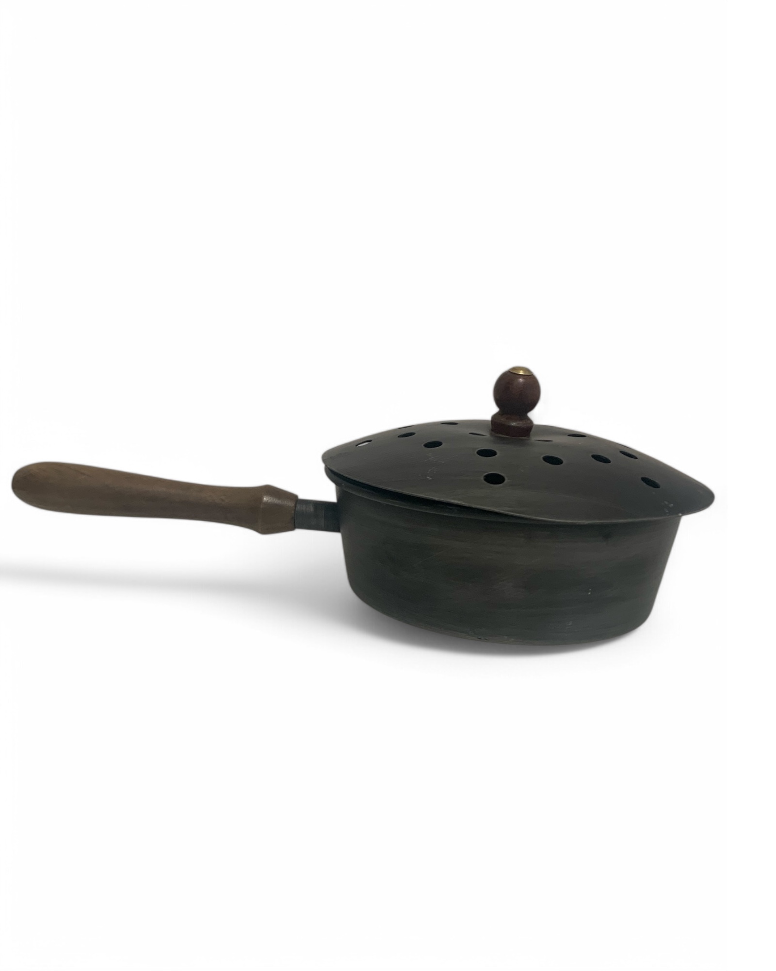 Vollfunktionsfähige Räucherpfanne mit kleinem Makel. Beule durch Transportschaden auf dem Deckel.